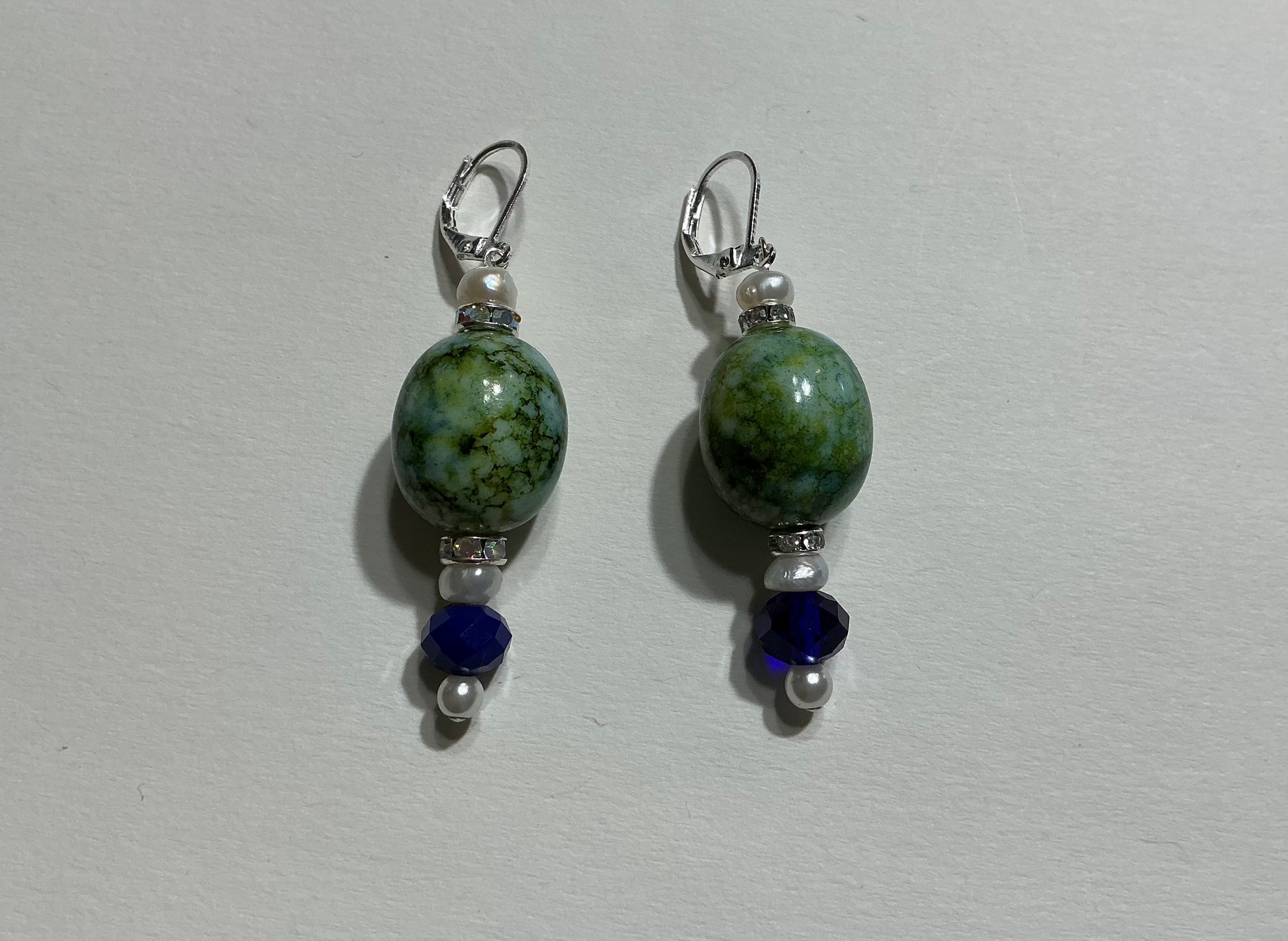 The 2PC Crystal Bead and Glass Pearl Bracelet Set, featuring memory wire construction, ensures a comfortable fit while maintaining its shape. Accompanied by matching earrings with sterling silver lever backs, this handmade set is ideal for Seahawks fans, showcasing a vibrant color scheme that enhances team spirit and individuality.